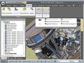 Model concepts can be created by simply dragging intelligent 3D features (IntelliShapes™) from pre-built catalogs and dropping them into a scene or onto an existing part. Modifications can be accomplished by simply pulling on dynamic handles, or through property pages, accessed through a simple right mouse click. IntelliShapes are designed for maximum flexibility and can be fully parameterized.