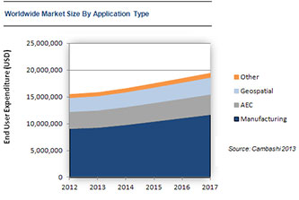 The CambashiIndustry Observatory breaks down global technical applications spend into over 110 industry sectors and 53 countries worldwide. We use proven econometric forecasts to predict future spending to 2017 and create a robust resource for market planning. The Cambashi Industry Observatory enables you to: