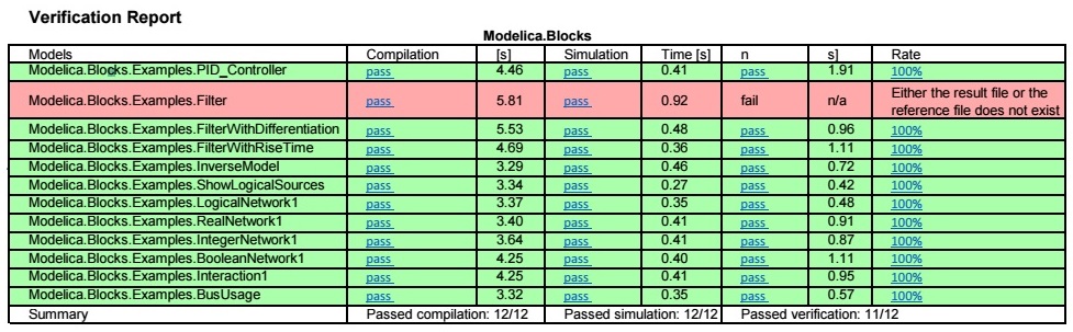 Script-based testing enables the test author to write finely tuned tests that interact with the compilation and simulation process and to test individual models with specific compiler and simulator scenarios.Model Testing Toolkit supports cross-tool testing with several different Modelica compilers and simulation environments using FMI.